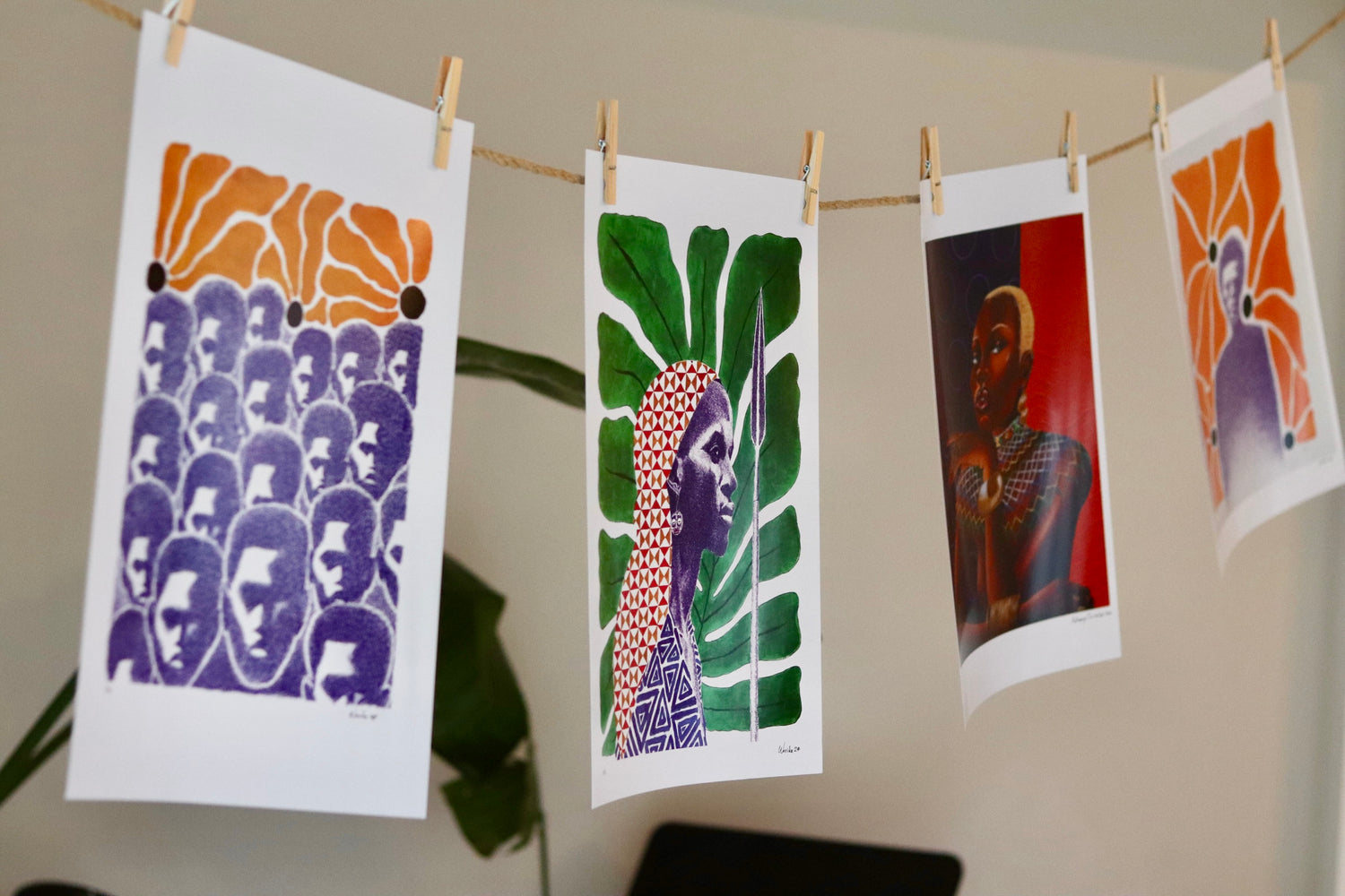 Wasike Maori, who also designed our logo, works with a distinctive ballpoint technique - layering crisp lines into pieces that feel alive and full of character. His work is natural, intentional, and rooted in heritage.